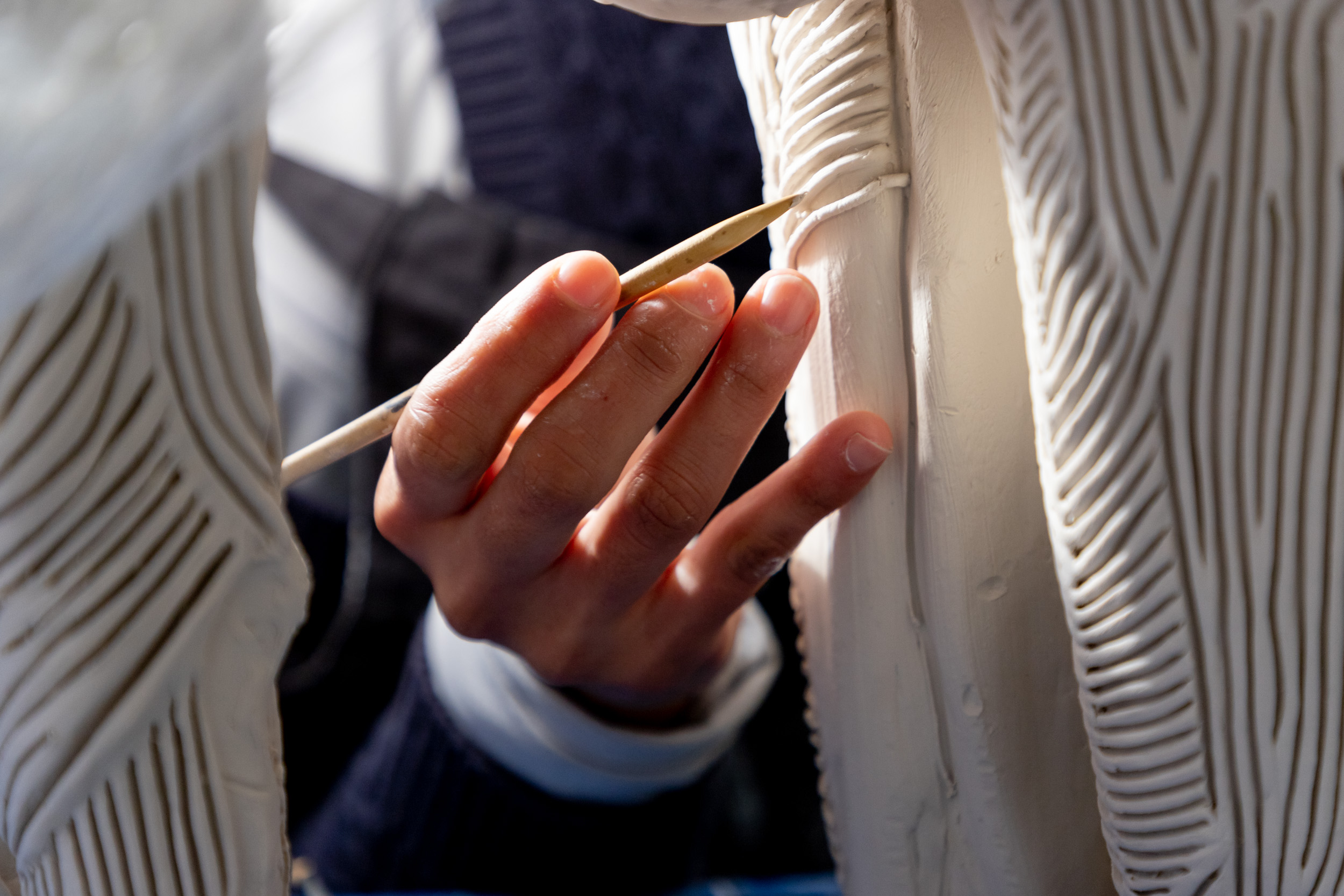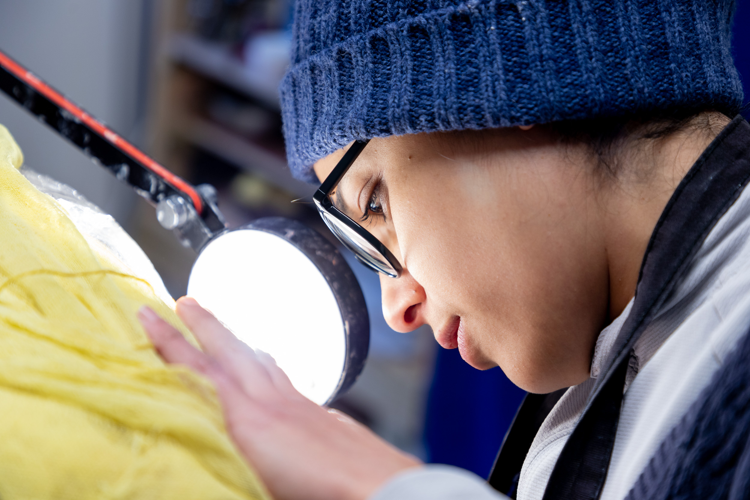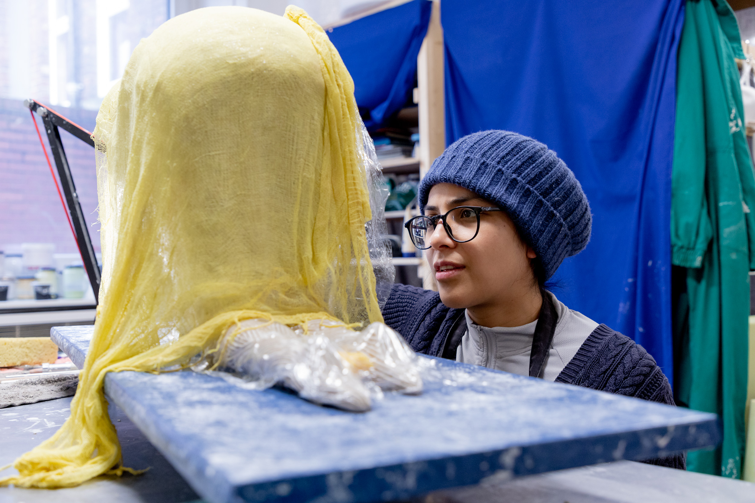 Photos of Mexican-born designer and maker Fernanda Cortes working at Yorkshire Artspace, February 2021.