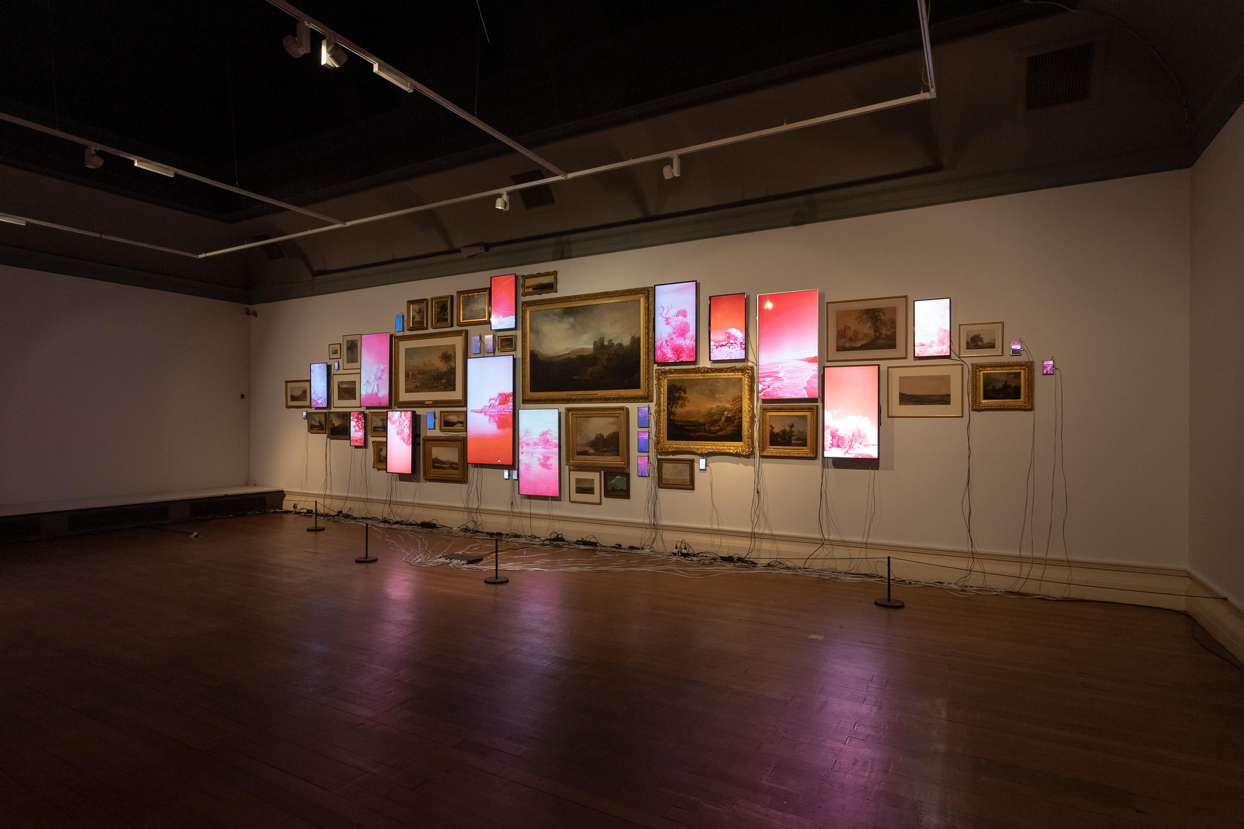 American artist Evan Roth's Artangel 2018-19 commission, Red Lines, streamed via the internet from coastal sites around the world directly into the gallery, alongside works from The Usher Gallery's landscape collection.