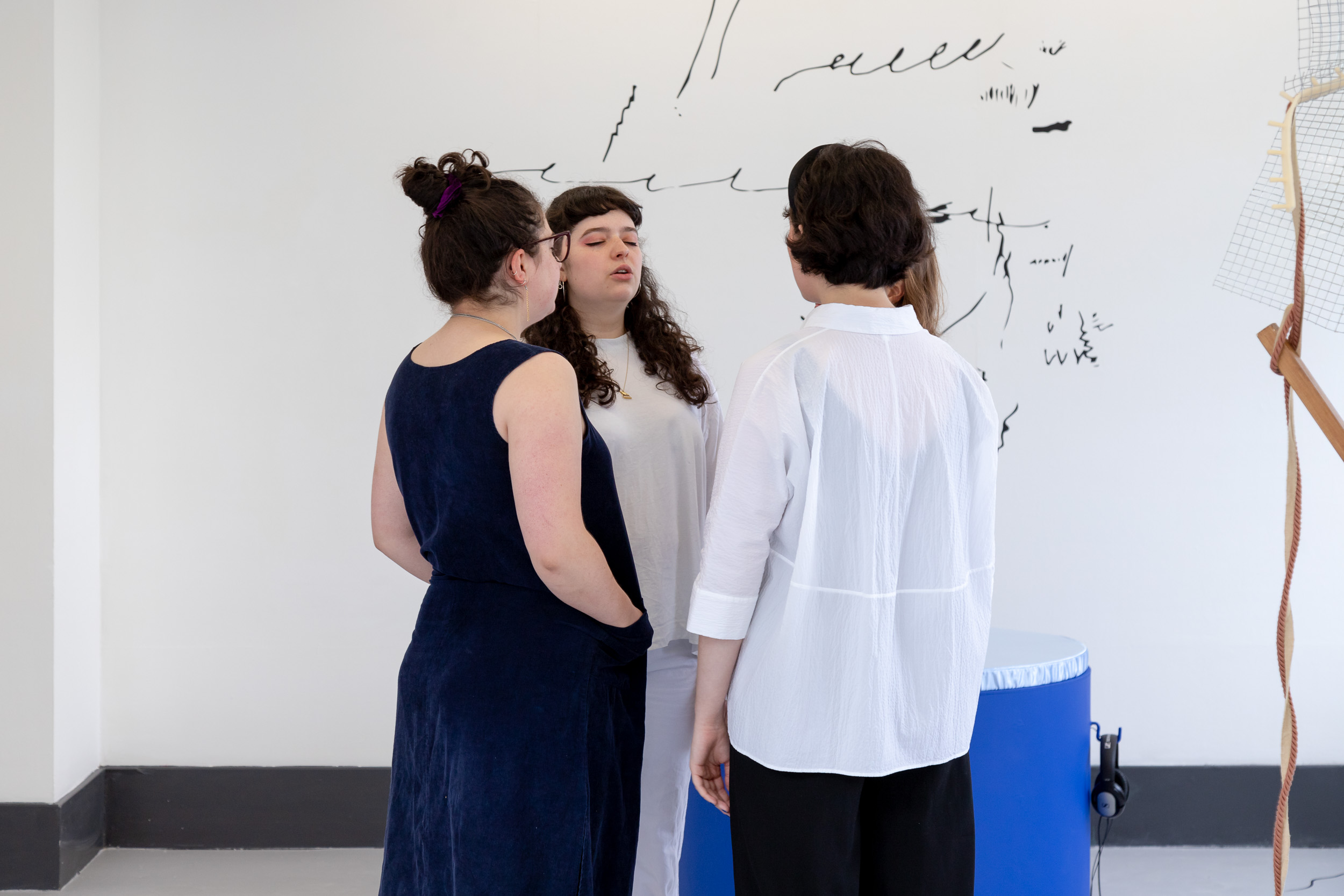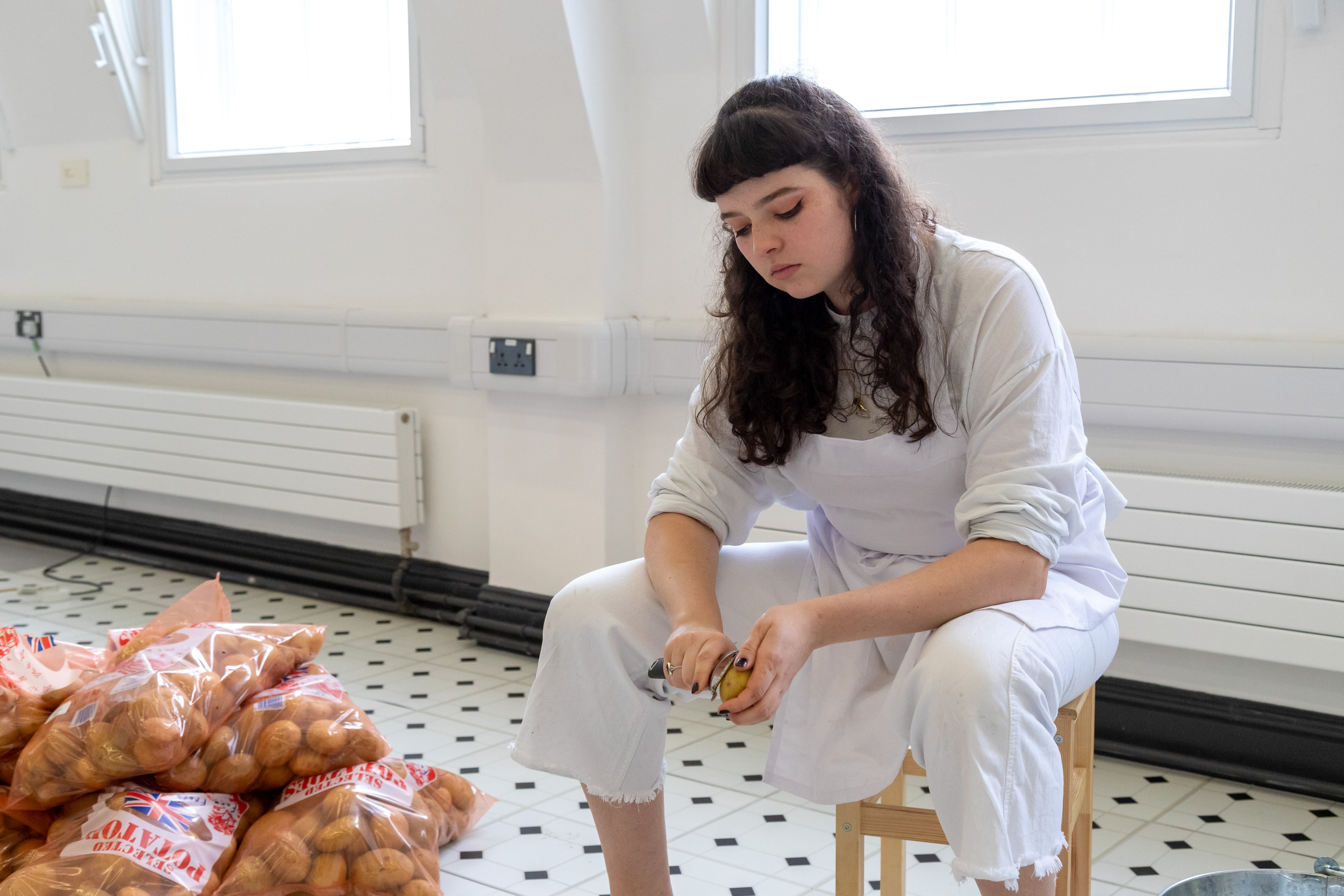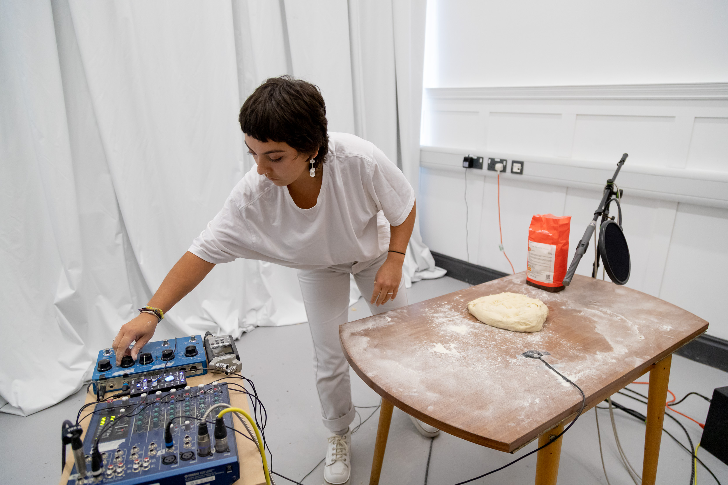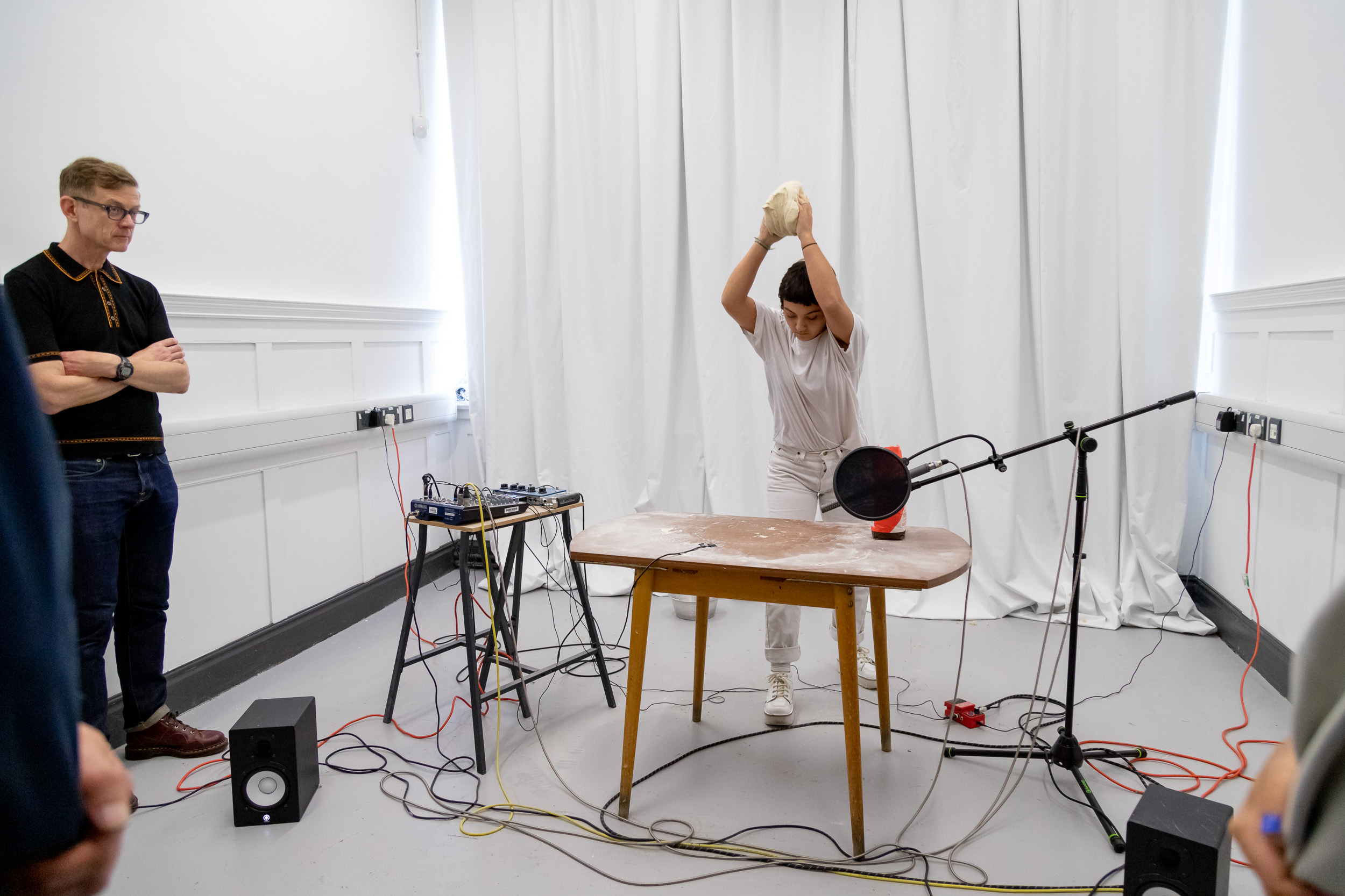 Performances at 'Cut the Mustard', University of Leeds Degree Show, 2019. Featuring Isabella Pead (Apeeling), Daniela Geraci (On Kneading Trauma) and Lucy Cunningham (I was unspeakable, so I ran into the language of others (choral piece)).