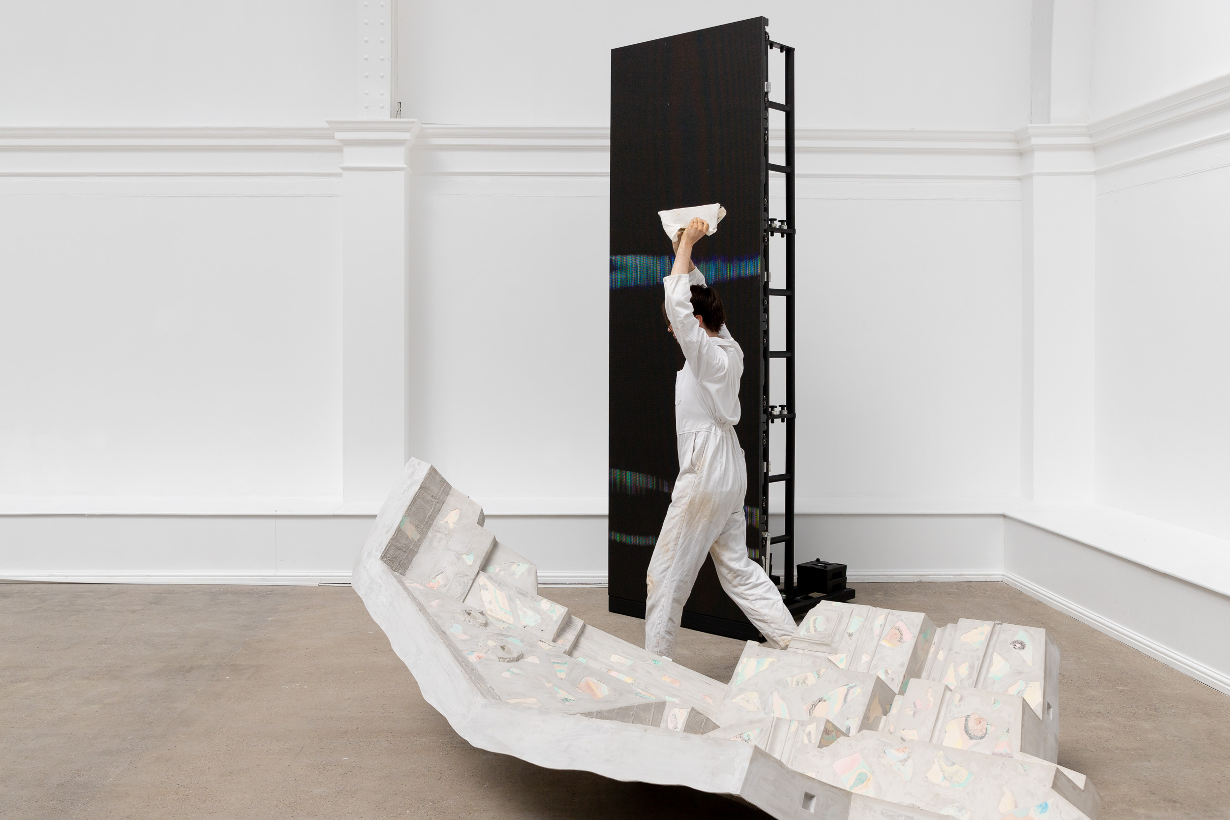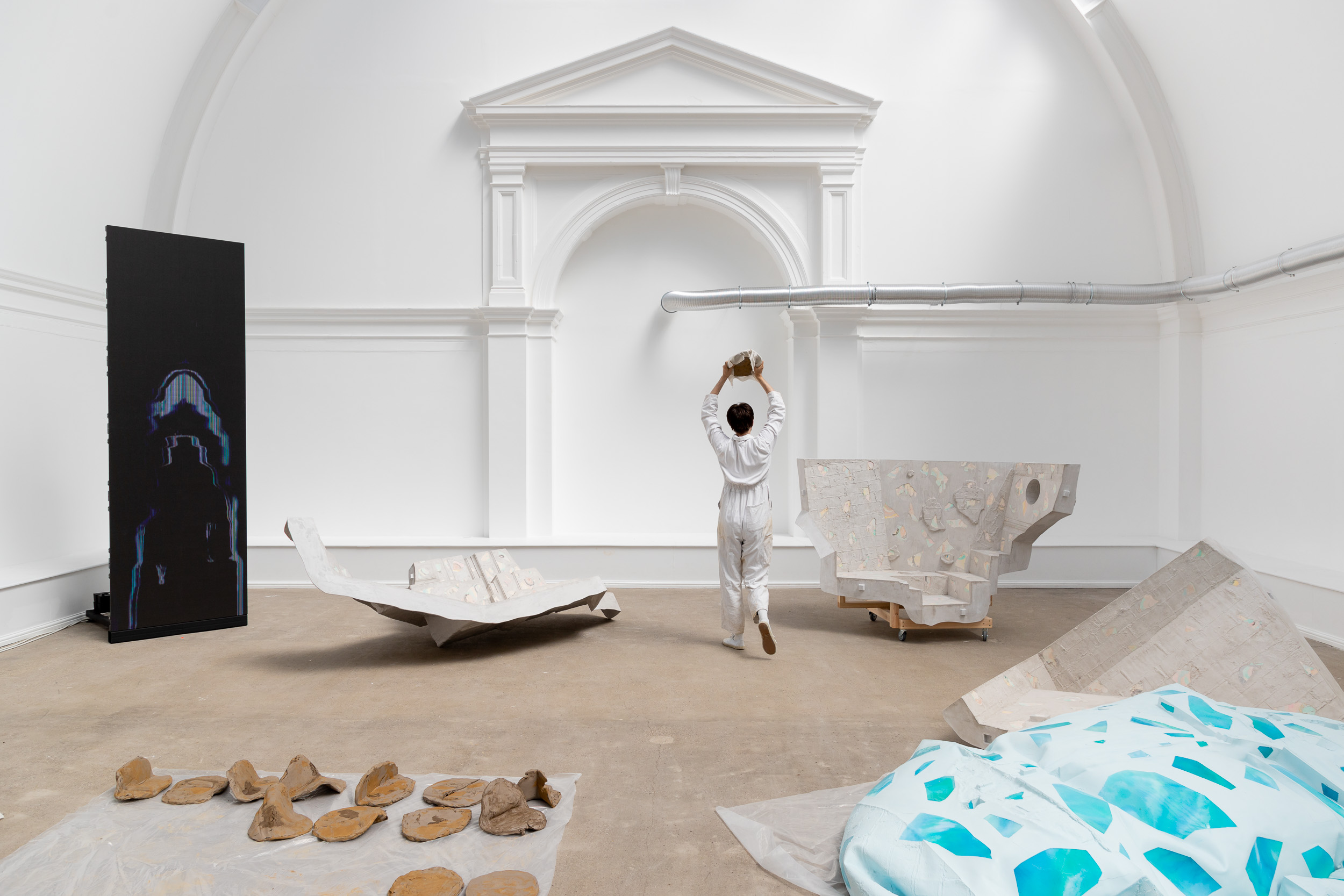 Recording Performance in the Central Court at Leeds Art Gallery during the install of 'Spatial Drifts' exhibition.