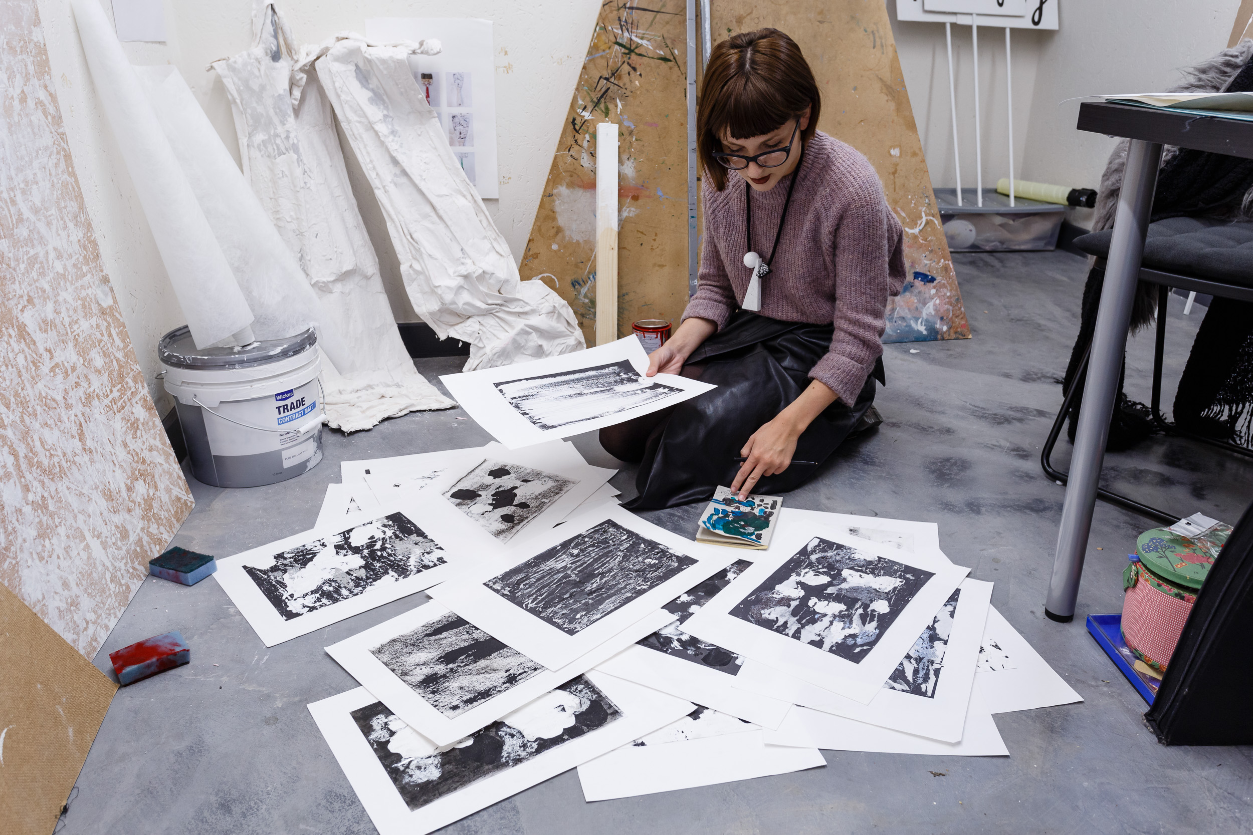 Photographs of studio holders at The Art House, Wakefield. Helen Thomas, Claire Maw and Lisa Marie Dickinson.